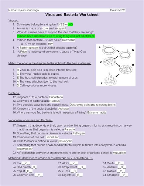 Read Online Viruses Bacteria Worksheet Answers Biology Epub