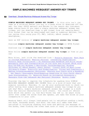 Read Simple Machines Webquest Answer Key Trimpe Epub online is a convenient and frugal way to read Simple Machines Webquest Answer Key Trimpe you love right from the comfort of your own home. Yes, there sites where you can get Epub "for free" but the ones listed below are clean from viruses and completely legal to use.